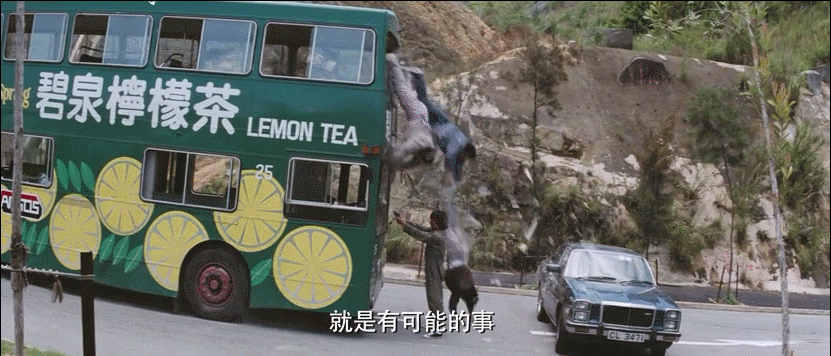 《警察故事》里一段巴士急刹车,三个人从车上跌落的戏,当时这场戏都没人敢拍,最终武行们硬着头皮上了。