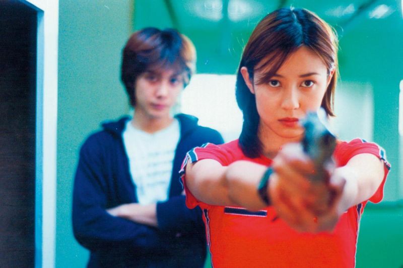 陈以文2000年执导电影《想死趁现在》众星云集, 还邀来日本红星水野美纪(前)和柏原崇(后)来台演出。