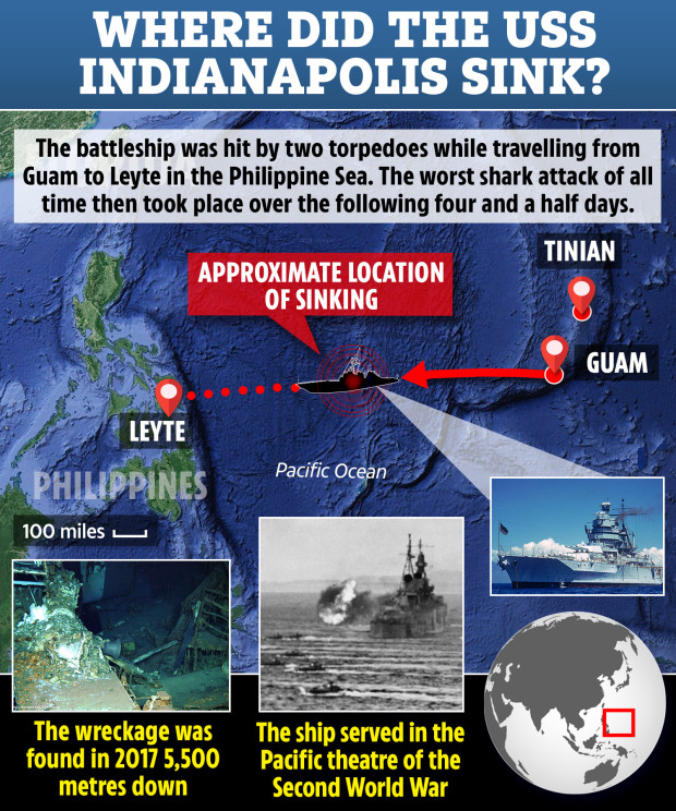1945年7月30日晚,“印第安纳波利斯号”在完成为广岛原子弹运送铀的秘密任务后,从蒂尼安岛驶向菲律宾。