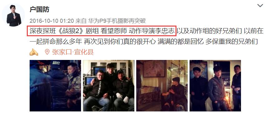 因户国防比较符合吴京的外形,从此,便成了吴京御用替身演员,包括后来吴京主演的《杀破狼2》和《战狼2》,都有他幕后的身影。