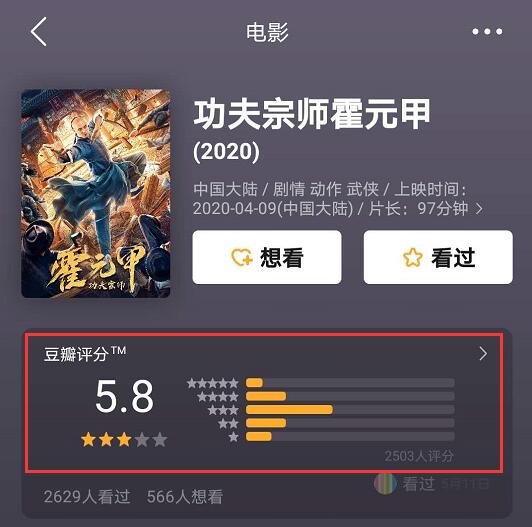 笔者给予《功夫宗师霍元甲》三颗星,65分,如果主创能在原创剧本上下足功夫,豆瓣破7分也是非常有可能的,最终豆瓣2000多人评出了5.8分,算是一部比较成功的网络大电影了,观影过的朋友,您给予此片多少分呢?