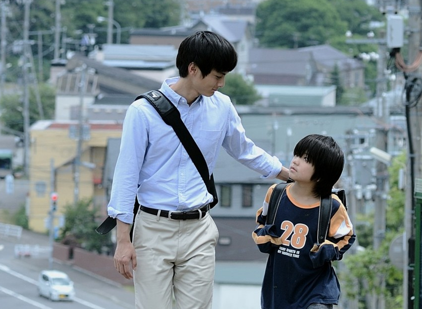 吴美保当然不会以如此晦暗和绝望的基调为电影作结,正如电影的标题和结尾所预示的那样,虽然只存在于特定情境下的“那里”,却依然有着无法阻挡的“光在《你是好孩子》里,吴美保同样不愿意就这样与命运苟全。她要让与水木有相同宿命的阳子用自发光的方式去感化水木,还要让弘也的妈妈在弘也与秋子的巨 动中看到弘也身上散发的神圣光辉。然后,在电影的最后一幕, 她还要让被感情与工作折磨得快要崩溃的冈野,在遭受了神田继父的谩骂后依然鼓起勇气,敲响那扇门。