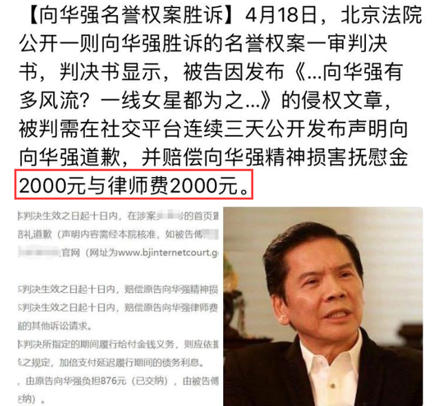 最近娱乐圈中,李晨起诉网友造谣侵权案败诉,但另一个人——向华强却赢得了官司。