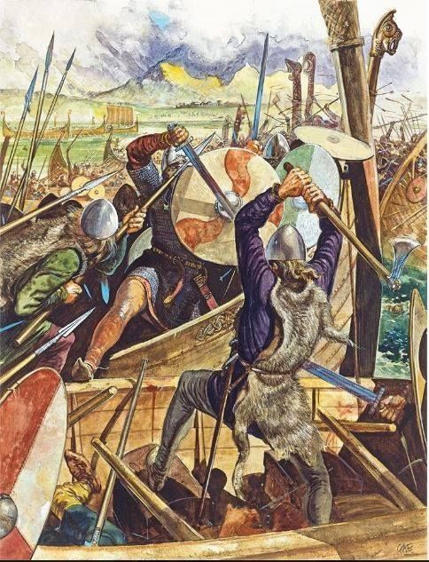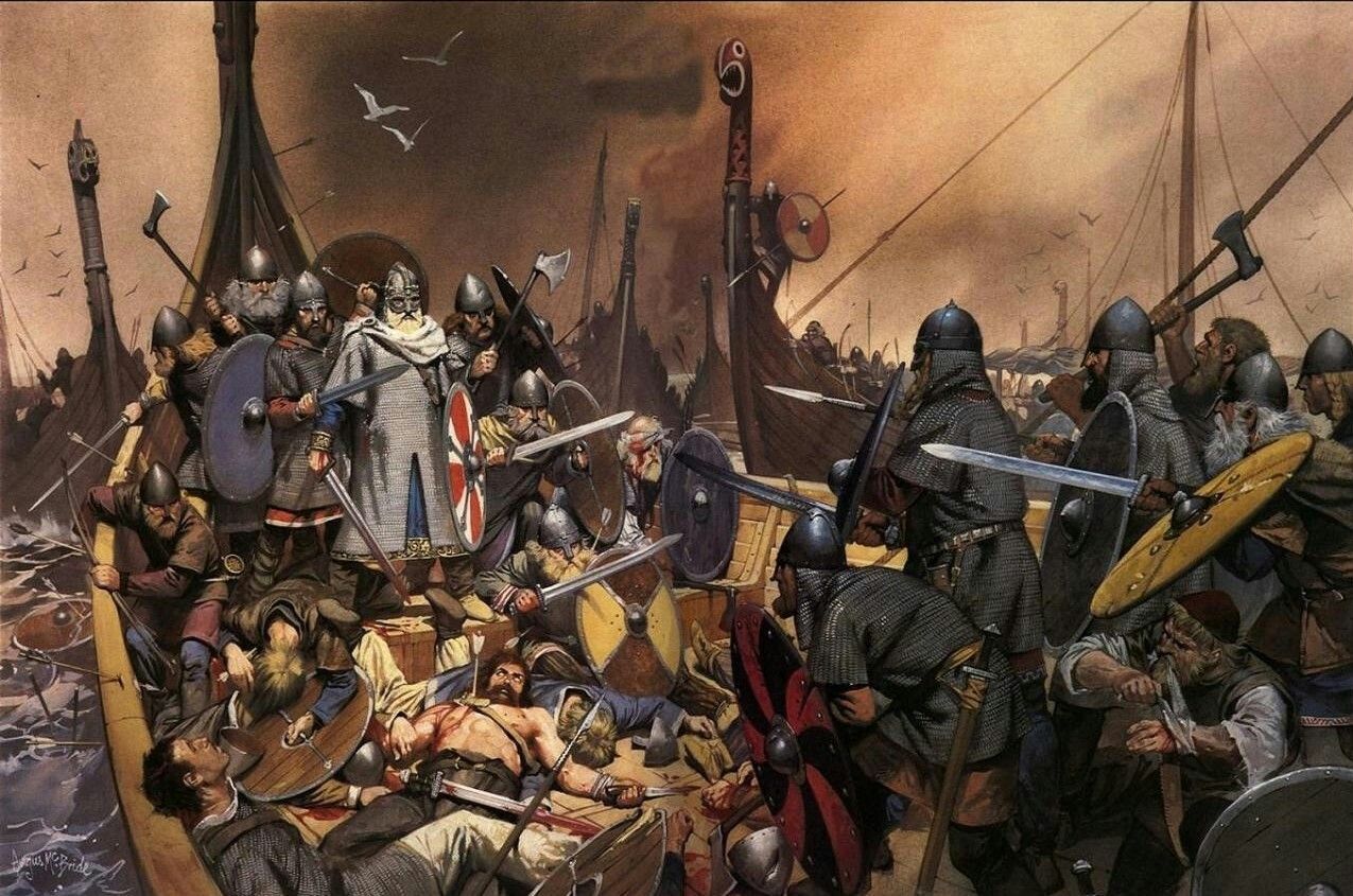 不同于古典时代地中海的海战,维京人的龙头战舰从一开始的设计上就是用来快速输送部队和战利品的,追求机动性最大化的维京人对于撞角和吊钩这样会加大船重、妨碍航速的海战装备向来嗤之以鼻。这决定了维京人之间的海战大多通过最简单粗暴的接舷肉搏来一决胜负,哪一方的兵力数量质量占据优势,基本上就能大致预判出海战结果。