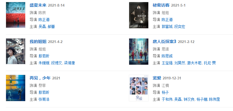 纵观妹妹的影视资源,我们会发现她和不少导演都是二次甚至三次合作。