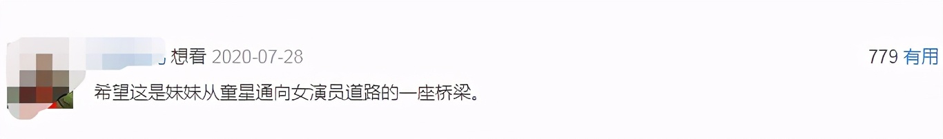 而在前不久上映的电影《我的姐姐》中的豆瓣想看评论中,前排出现了一句“希望这是妹妹从童星通向女演员道路的一座桥梁”。