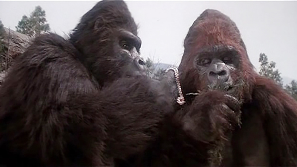 1986年的《金刚复活》中也出现了金刚宝宝。这部片子是1976年《金刚》的续集。1976年版《金刚》基本是初版的翻拍,《金刚复活》讲述金刚在坠下大楼后未死,在好心人类的帮助下甚至遇到了一只母金刚,生下了一只金刚宝宝!