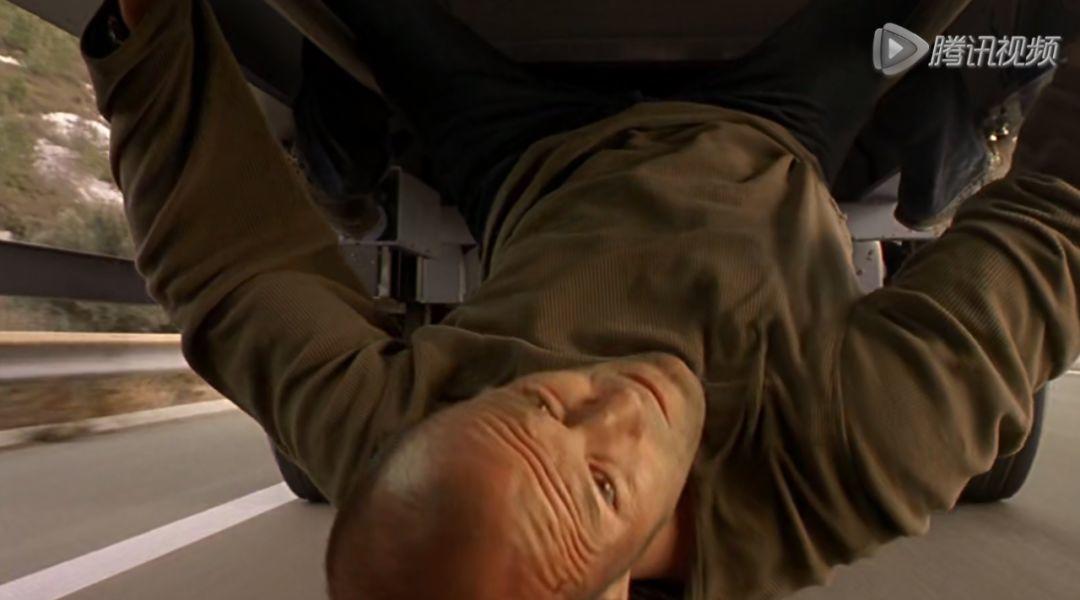 在那部电影,他就攀上了行驶卡车的车底,当然,剧组怕他抓空,所以把他绑在了车底下。