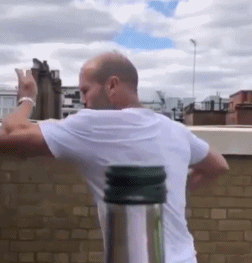 在《帕克》,他真的在50层楼的阳台外边吊着。