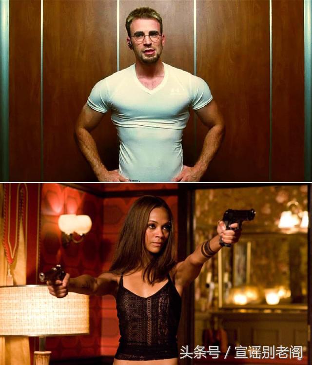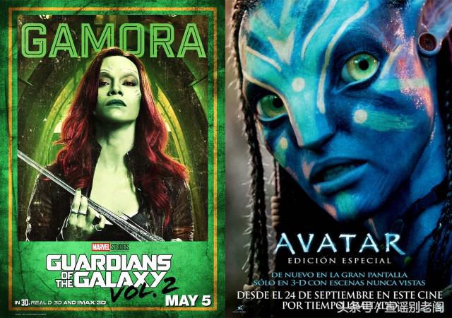 绿皮侠女卡魔拉vs蓝皮肤公主娜蒂瑞说回正题。美队×卡魔拉“偷摸儿”相遇在2010年——刚演完《阿凡达》的伊佐·索尔达娜在还没变身卡魔拉(《银护》第一集2014上映)之前,就和还没变身美队的克里斯·埃文斯(第一集《美队》2011年上映)在动作片《绝命反击》中相遇了。