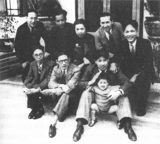 1938年3月,广州。前排左起:茅盾、夏衍、廖承志;后排左起:潘汉年、汪馥泉、郁风、叶文津、司徒慧敏