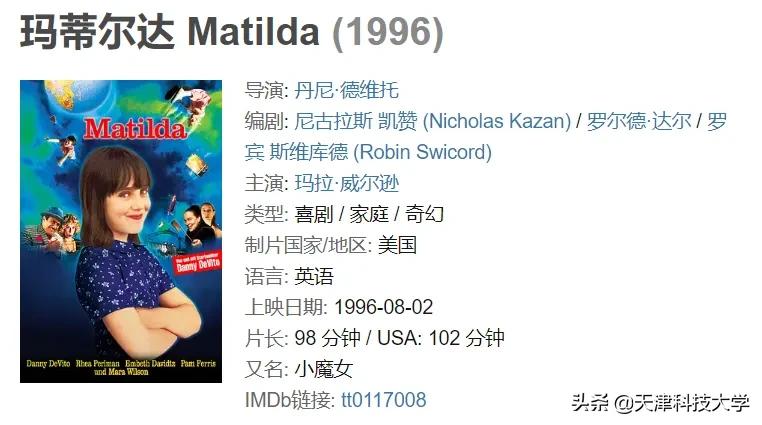 哈里(丹尼·德维托 danny devito 饰)和泽尼亚(雷亚·普尔曼 rhea perlman 饰)两夫妻,一个是商人,一个是赌棍,两人再也没有想到的是,他们爱情的结晶,小小的玛蒂尔达(玛拉·威尔逊 mara wilson 饰)竟然是个世间罕有的天才。应玛蒂尔达的要求,完全忽视她的教育的父母将她送进了康琴小学,一段新的旅程在玛蒂尔达面前就此展开。身为康琴小学的校长,特拉齐布尔小姐(帕姆·费里斯 pam ferris 饰)喜欢听话而温顺的孩子,身为铅球高手,她解决问题的唯一方法就是武力。和暴力的特拉齐布尔小姐完全相反的是一年级老师汉尼小姐(艾伯丝·戴维兹 embeth davidtz 饰),她的温柔和耐心让玛蒂尔达如沐春风。聪明的玛蒂尔达发现汉尼小姐似乎有着一些无法结局但又说不出口的难处,她决定用自己的力量帮助汉尼小姐。