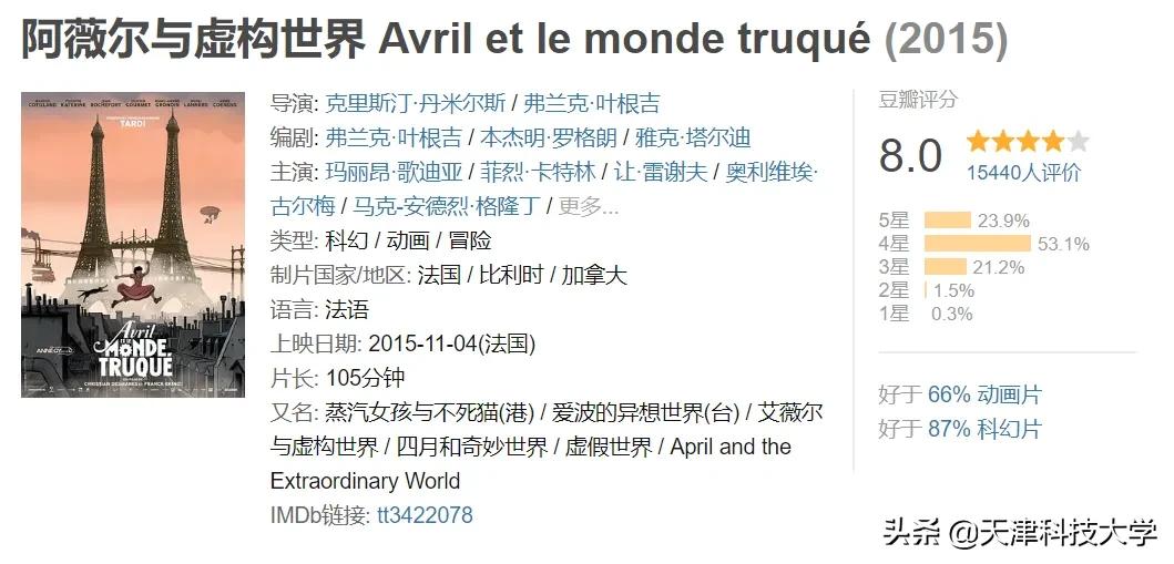 安锡动画节最佳电影,被誉为不会令细路欲求动画公仔,而是令世界更美好的电影。20 世纪中拿破仑五世统治的另一个法国,科学家70 年来不断失踪,飞行、电力甚至电影等伟大发明都成泡影,只有艾菲尔建起了第二座铁塔。煤与蒸气把天空弄得乌烟瘴气,出街要戴防毒面具,大皇宫变大温室。阿菲(玛莉安歌迪雅美丽声演)父母是科学家,也无端失踪,当老猫达尔文病到七彩,阿菲偷偷研制不死药,却因此逃亡历险,牙尖嘴利的达尔文、主意多多的怪爷爷、变节特工祖利亚也一起有难同当。《我在伊朗长大》监制再接再厉,法国漫画家jacques tardi 原著,糅合凡尔纳和宫崎骏的灵光,以罕见的怀旧动画风,找回失落的动画年代。