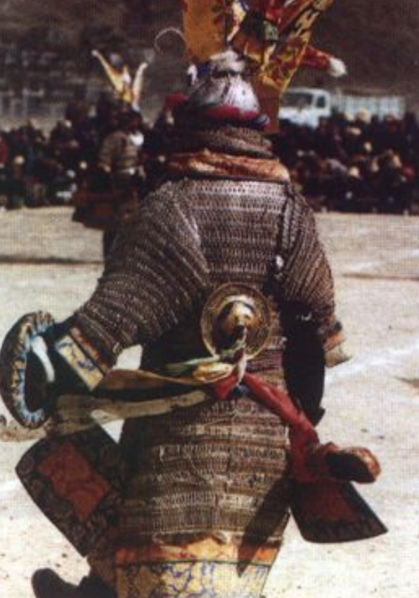 ▲1990年庆祝西藏和平解放的表演中演员所穿戴的复原的藏式扎甲