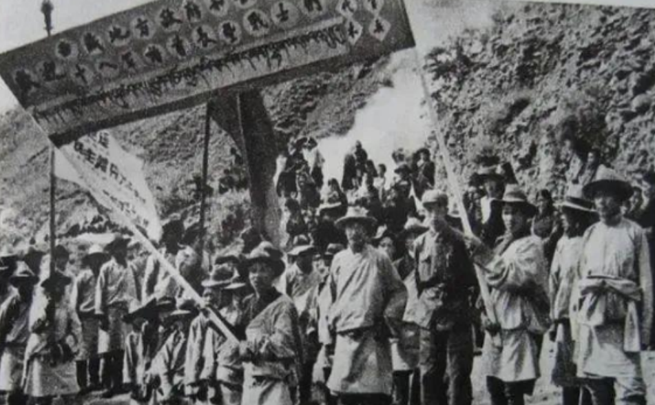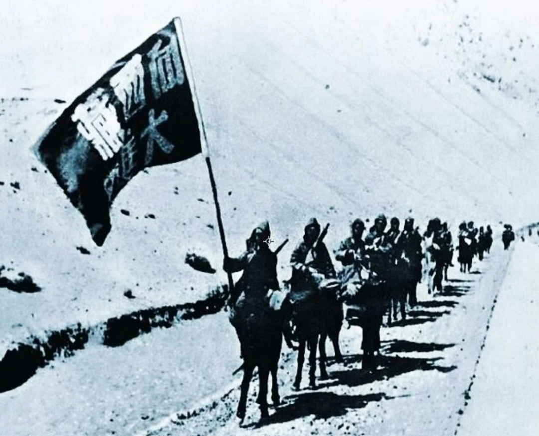 ▲打着“向西藏大进军”标志的起义骑兵部队