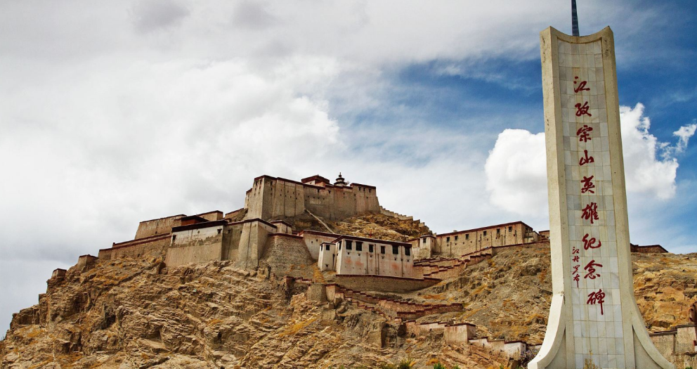 ▲电影《红河谷》的拍摄地和江孜战役的发生地江孜宗山城堡、抗英战争纪念碑,和布达拉宫结构相对接近,由于缺乏烧砖和精加工石材的能力,藏军的堡垒在面对火炮的持续射击时撑不了太久