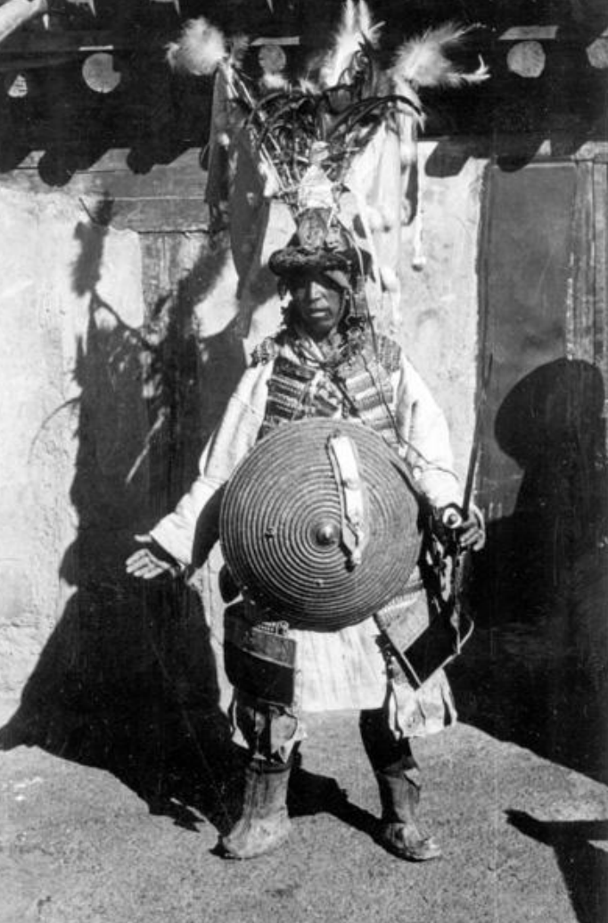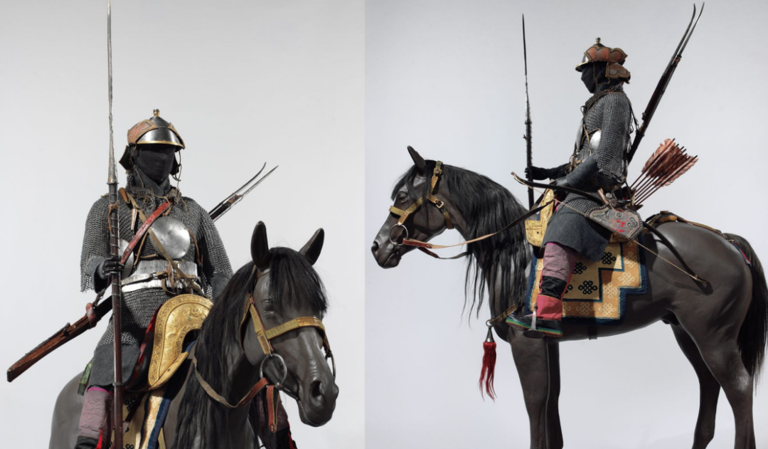 ▲大英帝国博物馆馆藏的西藏骑兵的标准装备,含印度式锁子甲、护心镜、铁封腰、叉子枪、复合弓和有着一定宗教含义的螺旋握把藏矛,这套装备被一直被藏军使用到了20世纪50年代