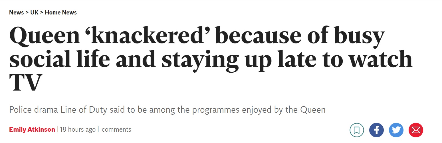 《独立报》说,女王这次住院,也有熬夜看电视的原因。