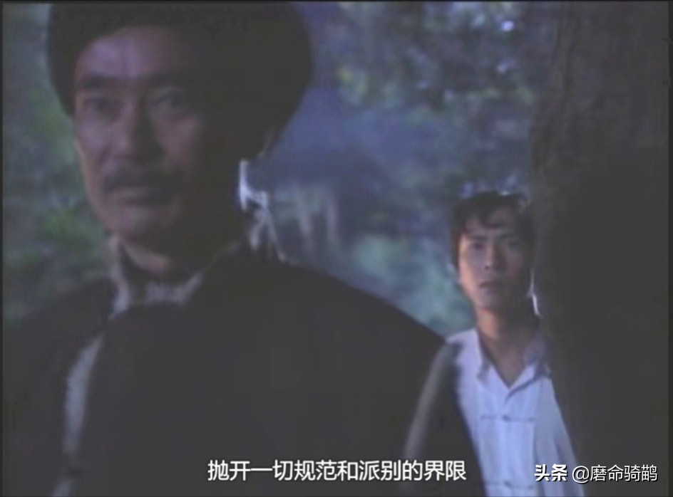 高雄很适合这种“人生导师”的角色,另一个经典例子是《精武门》里面的霍元甲。印象最深刻的是,霍元甲提着一盏油灯夜授陈真拳腿并用、融会贯通。