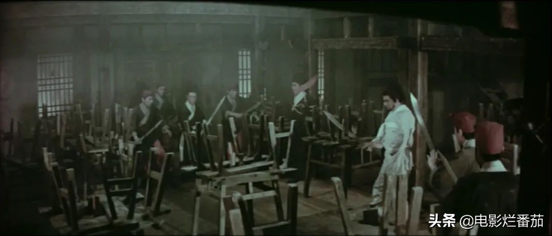 客栈打斗戏是胡金铨的真爱,《大醉侠》中金燕子以一敌众的精彩武打戏就曾惊艳整个香港电影圈;