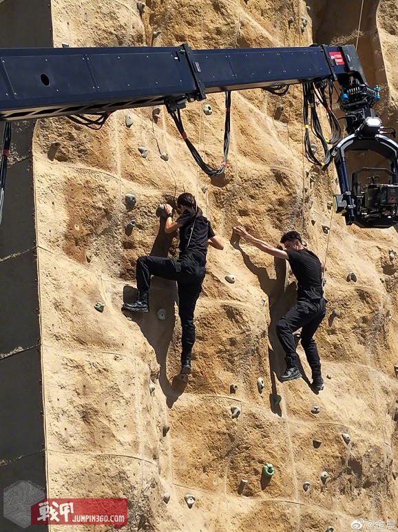 其实拍摄时候吊威亚了,然后后期把线抹掉了