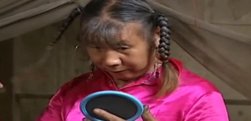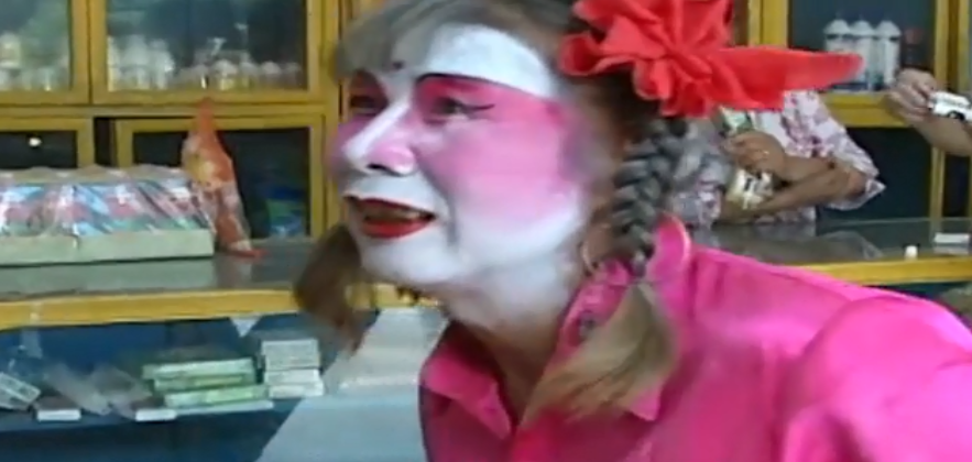 令人诧异的是,每每到镇上化妆时,他都会化成浓墨重彩的戏曲演员的妆容,