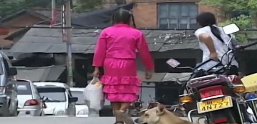 杨飞成每天都会穿着花裙子,穿梭在街上,