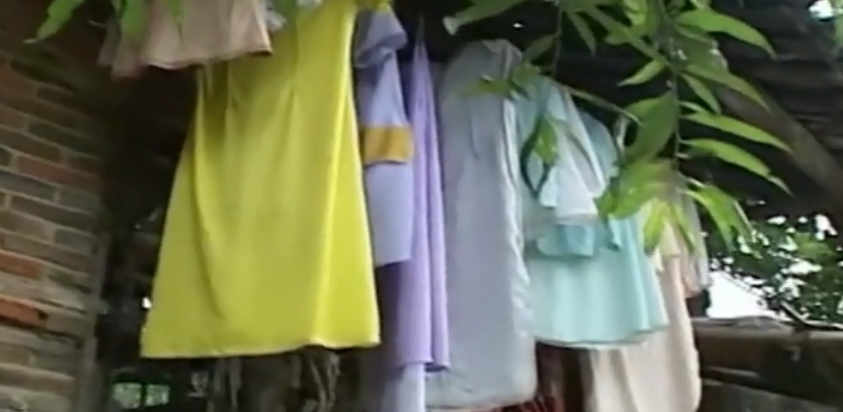 这些五颜六色的裙子,给杨飞成破旧的屋子增添了几分生机,但又显得格格不入,