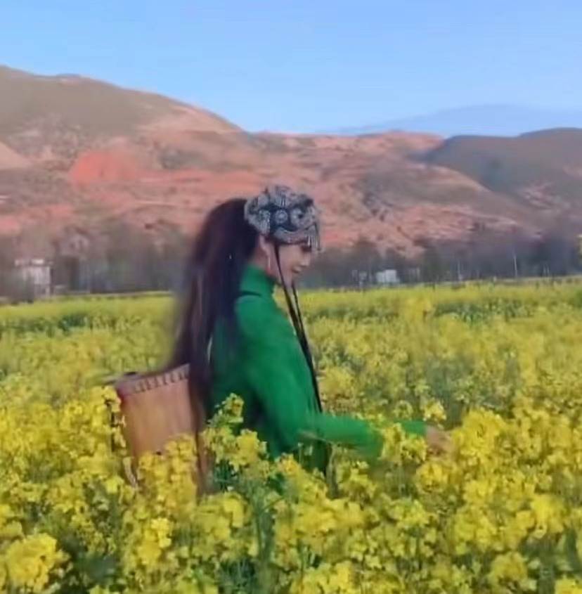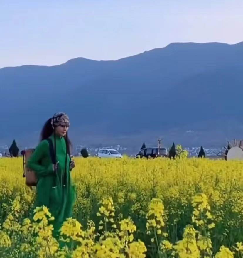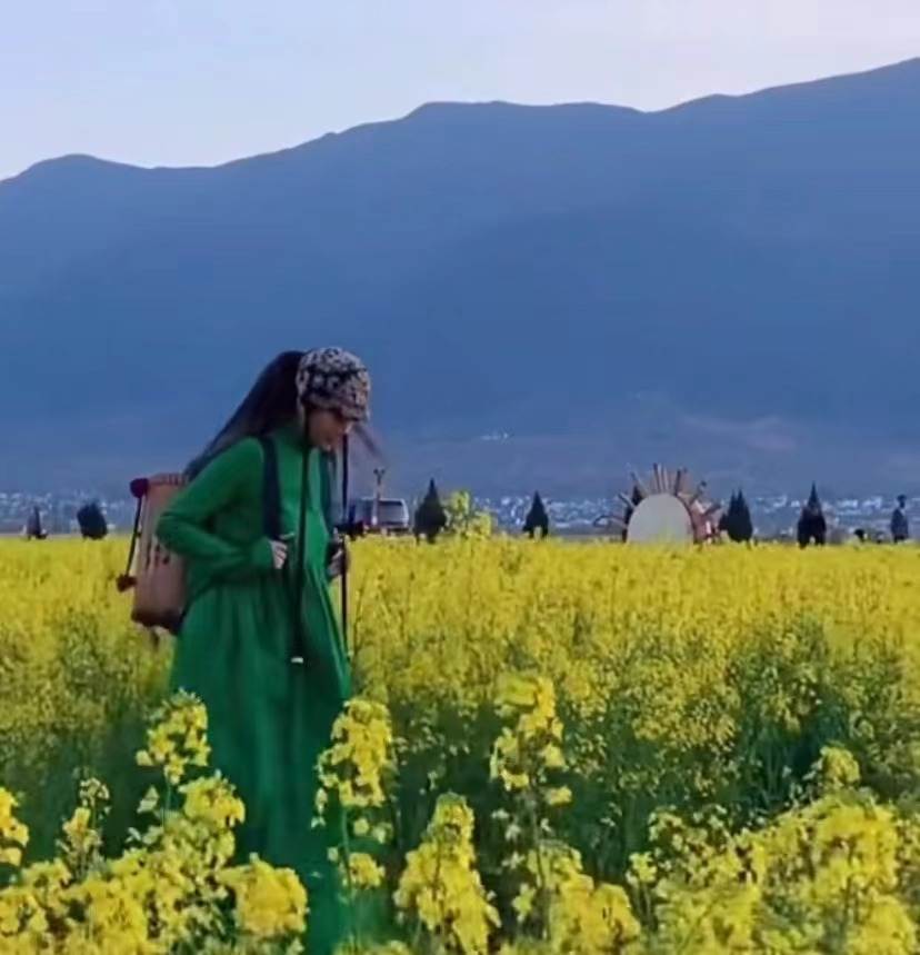 2月26日,杨丽萍在社交平台晒出近况并配文“拥抱自然,踏花赏春”,视频中她独自一人现身油菜花田,景美人更美。