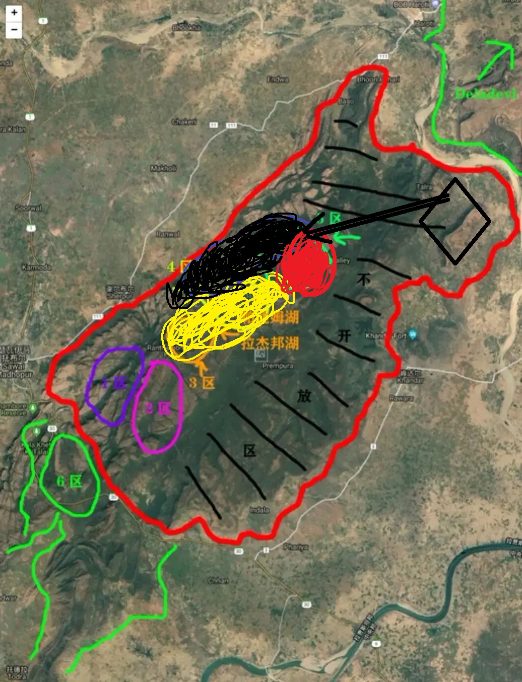 上图中的红色涂抹区域,基本上是t6-罗密欧雄虎的领地位置,也是他从小就熟悉的出生地周边。