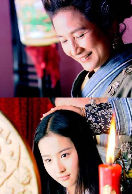邓佩佩和刘亦菲在《花木兰》中同屏的场景,这让人想起十五年前,《仙剑奇侠传》中,邓佩佩饰演的老人给刘亦菲饰演的赵灵儿梳头的场景。
