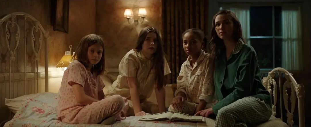 女孩们手拉着手完成一个完美的圆,仿佛某种献祭的神秘仪式,诡异而诱惑着她们挖掘自己内心最阴暗的秘密,释放着积蓄已久,她们不能理解只能被压抑着感受的,愤怒而失控的天真之恶: