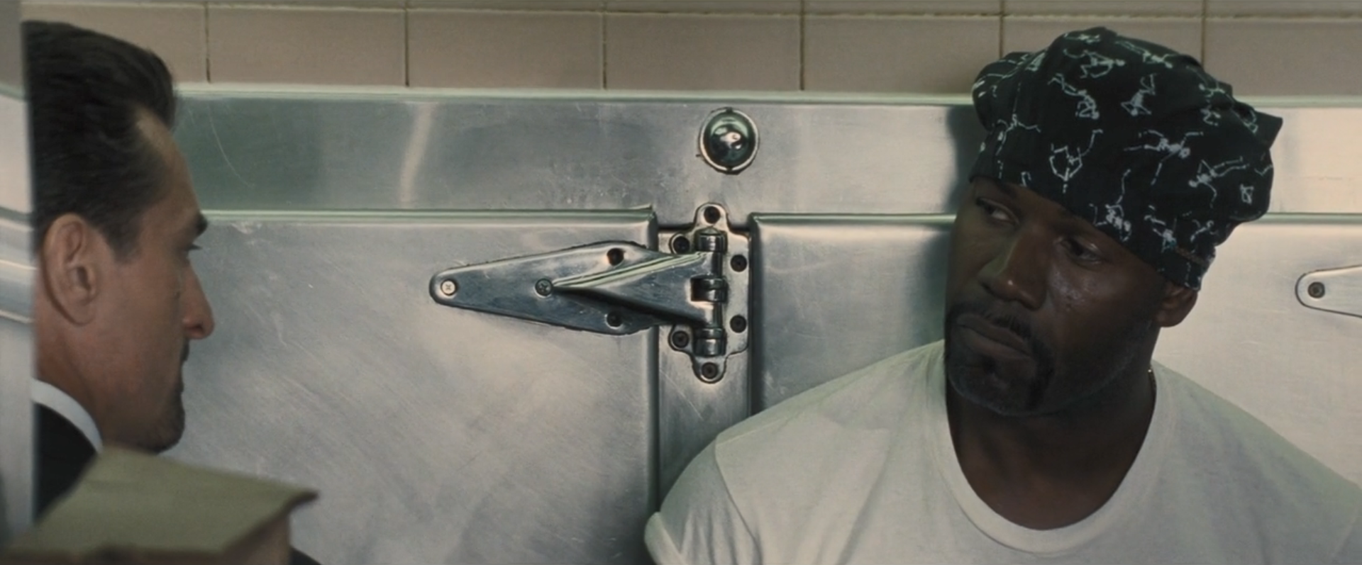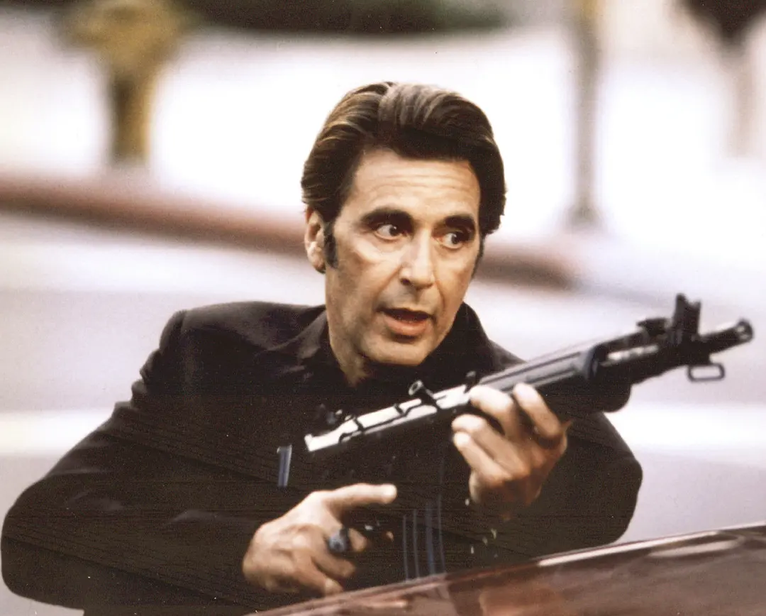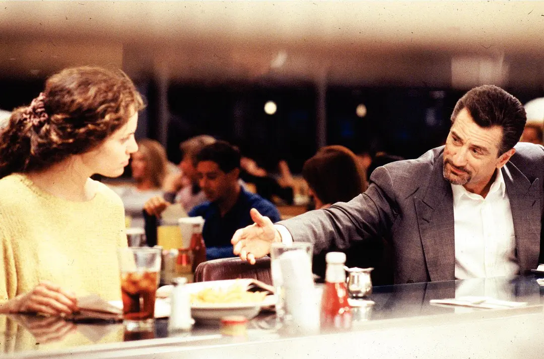不过本片最大的特点还是在演员,上图中的阿尔?帕西诺(左)和罗伯特?德尼罗(右)都是老戏骨,他们在《教父》系列中都奠定了自己的形象基础,让人一看就想到了冷酷的型男,不论是说话吵吵闹闹、看着嚣张的阿尔?帕西诺还是一脸平静甚至有些面瘫的罗伯特?德尼罗,都有一种中年男人的别样魅力,看过的人绝不会忘记。