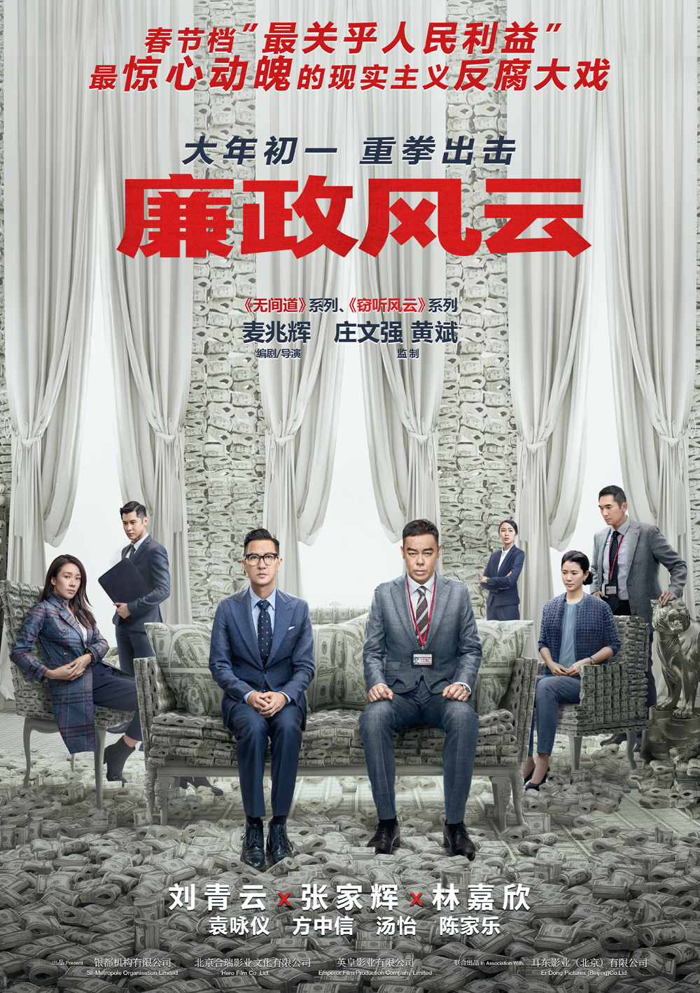 《廉政风云》最吸引人的地方,就是全阵容的影帝影后作为主演,张家辉,刘青云,林嘉欣,袁咏仪,这些都是香港的老戏骨。