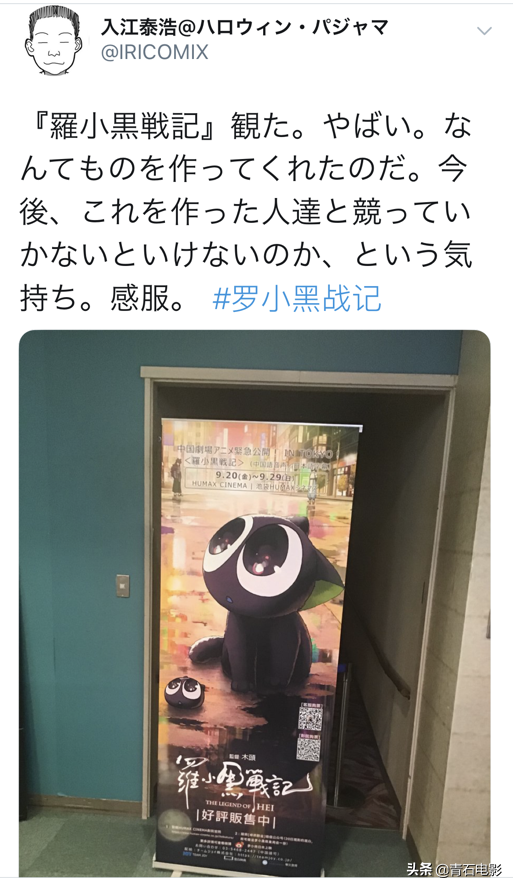 其中,日本明治大学特摄动画研究教授氷川竜介观影后赞不绝口,日本人气动漫《钢之炼金术师》监督入江泰浩更是化身最强自来水,多次发文卖力安利罗小黑,他表示