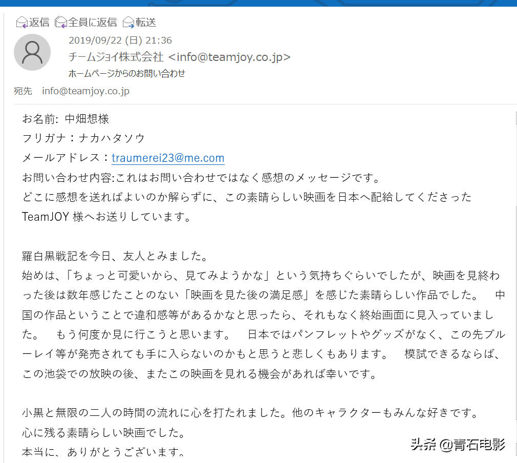 与此同时,电影意外收获日本业界知名人士的青睐和点赞。