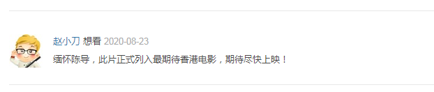缅怀陈导,此片正式列入最期待香港电影,期待尽快上映!