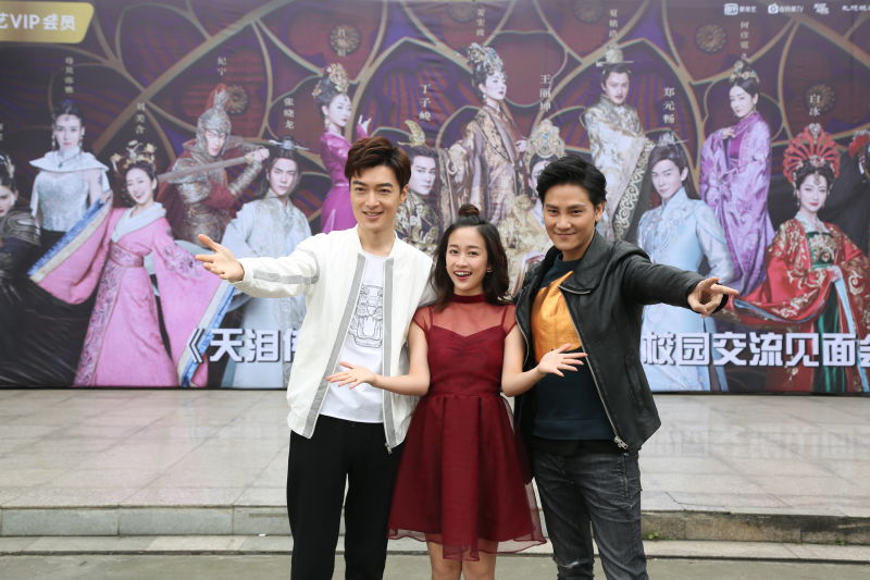 片花播放结束后,在观众的期待的掌声中,丁子峻、刘美含、纪宁纷纷现身,与同学们交流互动。舞台上,冷峻优雅的丁子峻、明艳动人的刘美含、时尚青春的纪宁,吸睛十足。现场的不少同学表示自己是这部剧的粉丝,剧中“古装+科幻”的创新题材、美剧般快节奏的剧情、精美的人物造型及极具科技感的良心特效,都是引发他们追剧热潮的原因。
