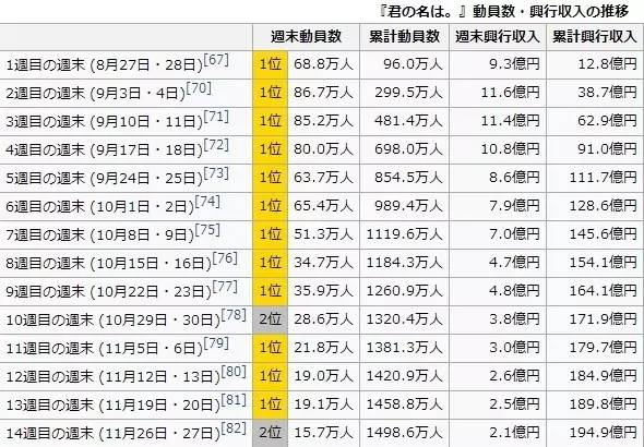 从上表可以看出,《你的名字。》之前,日本本土影史票房榜已被动画大师宫崎骏霸榜多年。