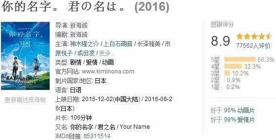 《你的名字。》在日本的票房,也是个神迹。