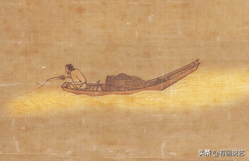 其一为作于公历一千一百年至一千二百年之间的宋人绘独钓图(见图一),此画独绘一翁蜷缩于一叶简舟之上享渔人之乐的画面,除开一人一舟之外几乎别无他景,极简至此便可称奇!