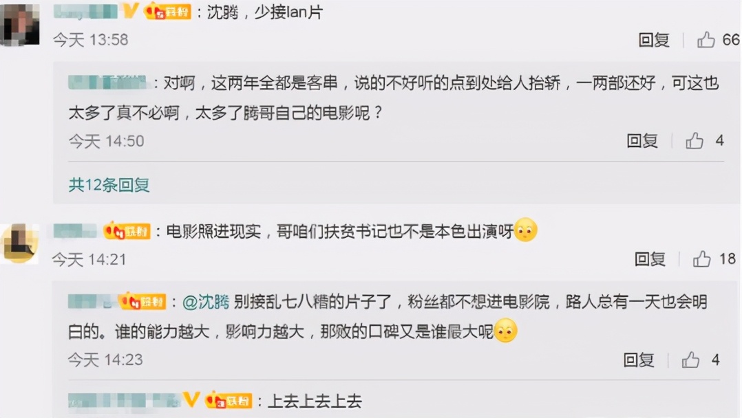 现如今,沈腾的粉丝早已注意到了他两年来的“抬轿”行为,反噬现象初见端倪,粉丝看到电影不是沈腾主演会觉得失望,看到沈腾出演的电影不好看的话会更失望。如果再来几部烂片如此消耗下去,他的热度还能坚持多久呢?