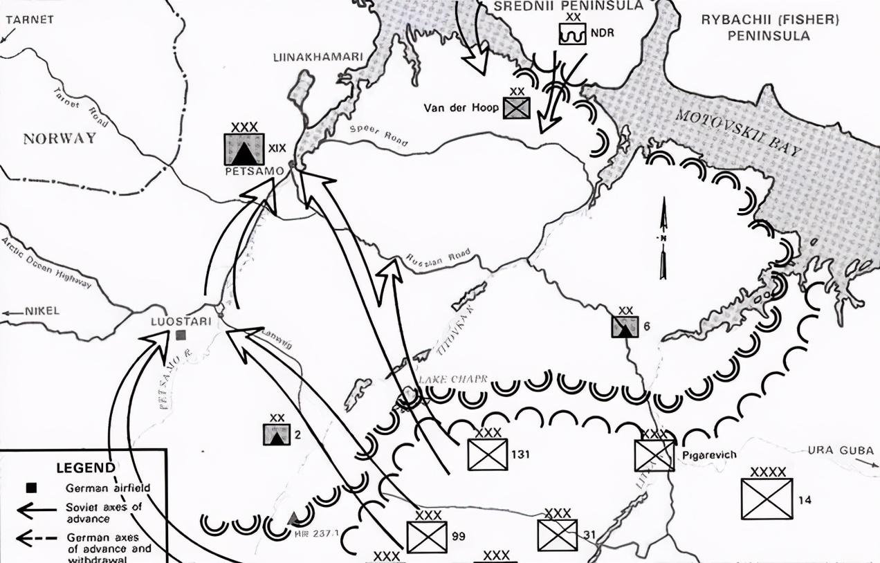 苏联空军在第一天夺取了佩特萨莫地区的制空权,德军被迫龟缩在工事中。苏军用坦克和重炮轰炸德军防线,2天内已经啃下了一些据点。