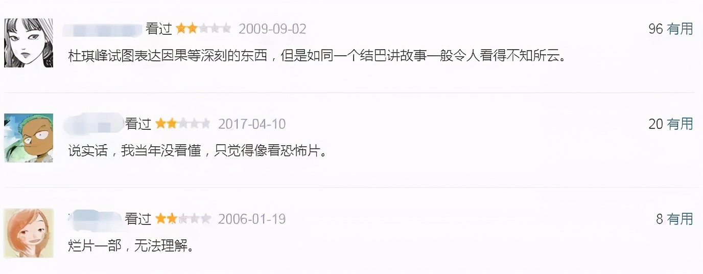 这个重新剪辑不仅破坏了影片原本的故事立意,这么一部“神作”突然变成廉价的爱情片。