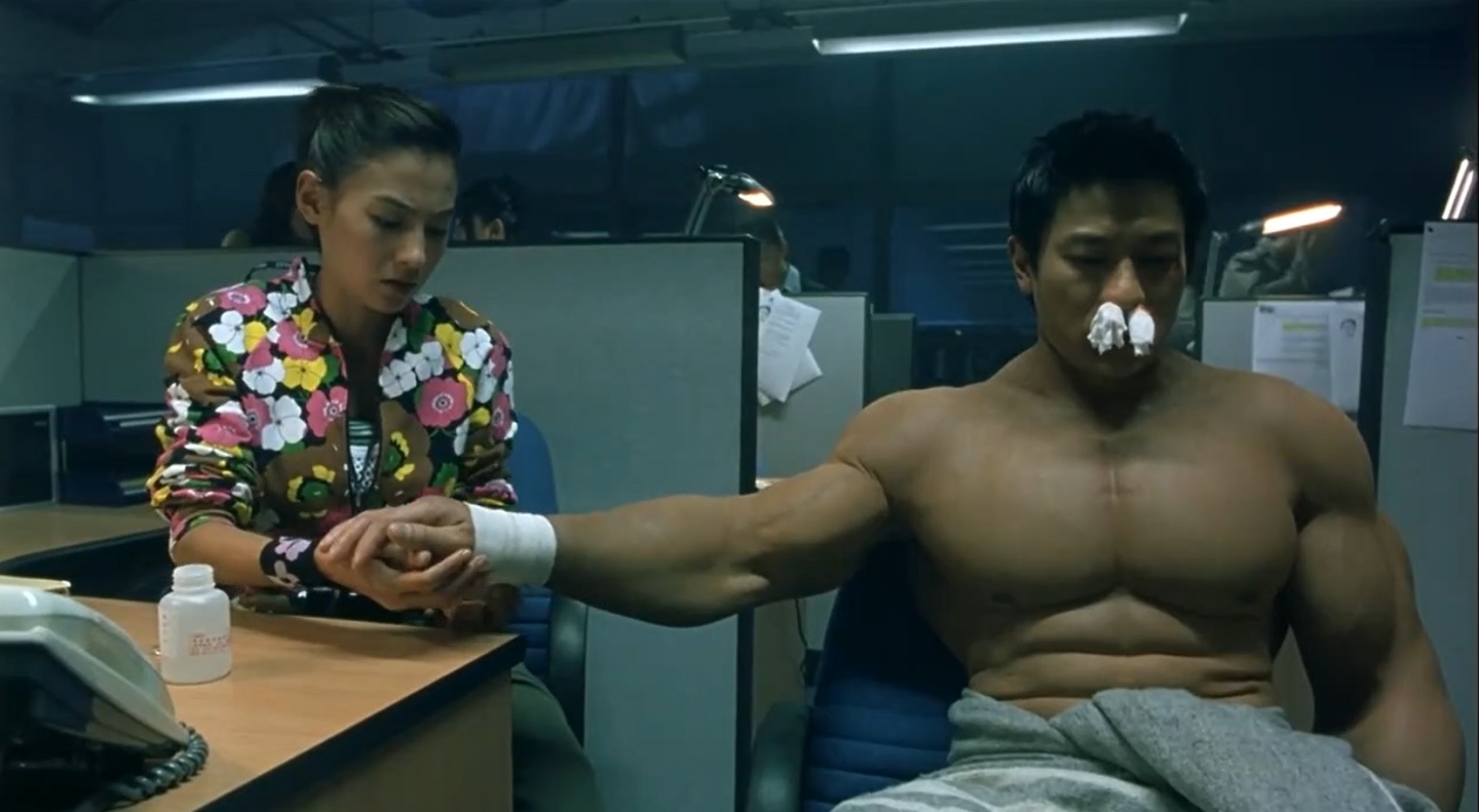 一个俱乐部中,一群年轻少妇围绕着在舞台上努力跳动的三位猛男,就在气氛最high的时候,一群埋伏已久的警察拿出了证件,结束了这场闹剧,刘德华饰演的大只佬奋力脱逃,张柏芝饰演的女警察李凤仪追出。