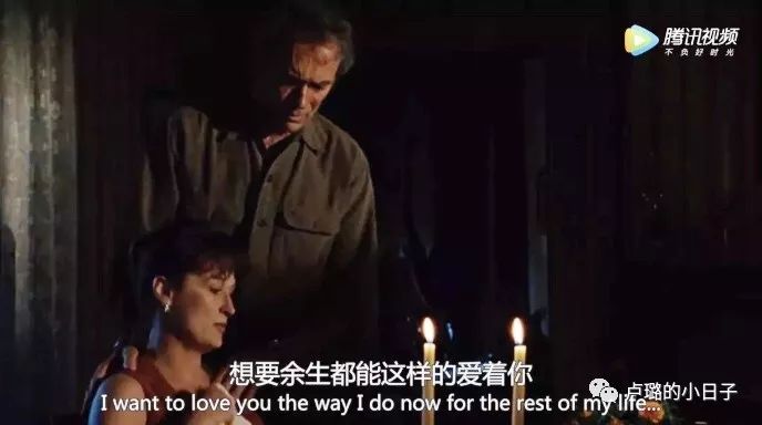 看到这里我已泪流满面。四日,换一辈子刻骨铭心。我深深地为弗朗西斯卡无法迈出的脚步感到悲哀,却也知道这都是生活的无奈。再选一次,或许她依旧会如此选择。