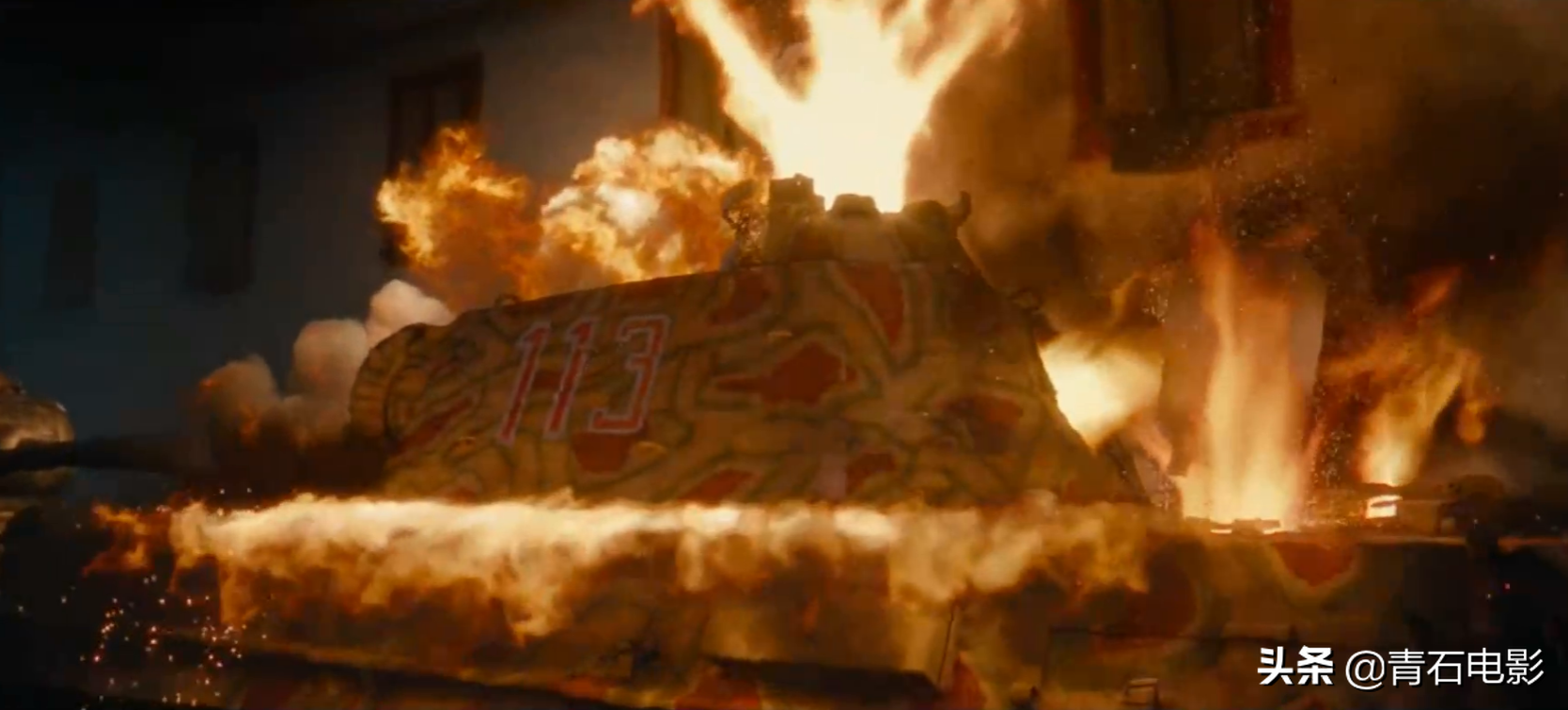 隔空开火还不过瘾,导演还安排了坦克相撞的好戏,片中甚至还有两辆坦克“贴脸对峙”正面对轰的场景,双方坦克手死命抢速度干掉对手,这种正面刚的“玩法”的根本玩的就是心跳啊!