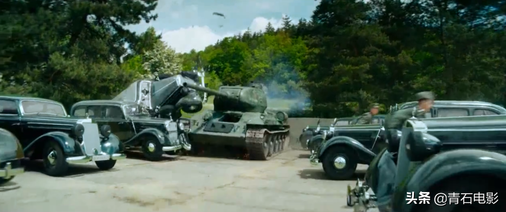 在历史上德国入侵苏联时,抵挡德军黑豹坦克的正是苏联t34坦克。在影片里,主角团开着t34大战黑豹坦克团,这两部有点“瑜亮情节”的坦克在电影里正面对决一争高下。
