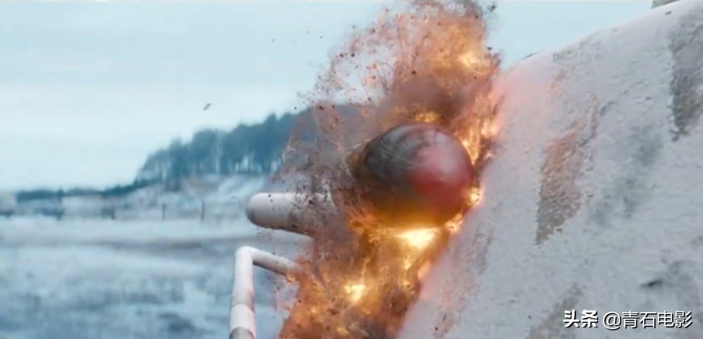 硬件条件达成了,技术一样也跟上了,导演在片中用cg技术慢放还原炮弹出膛的场景。