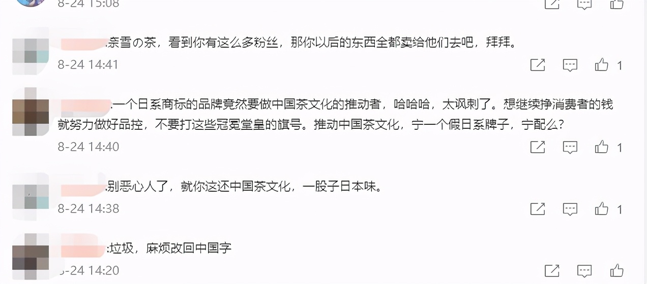 再说奈雪立志“做中国茶文化”这一点,也有问题。看其评论区,大部分网友对这一点嗤之以鼻。为何?因为奈雪其商标很让人产生误会——奈雪の茶。这样的商标,对于一些消费者而言,是难以接受的。这无疑,也会对奈雪造成一定的形象损失。同时,奶茶与传统茶文化,可以说是两回事,并不能混为一谈。
